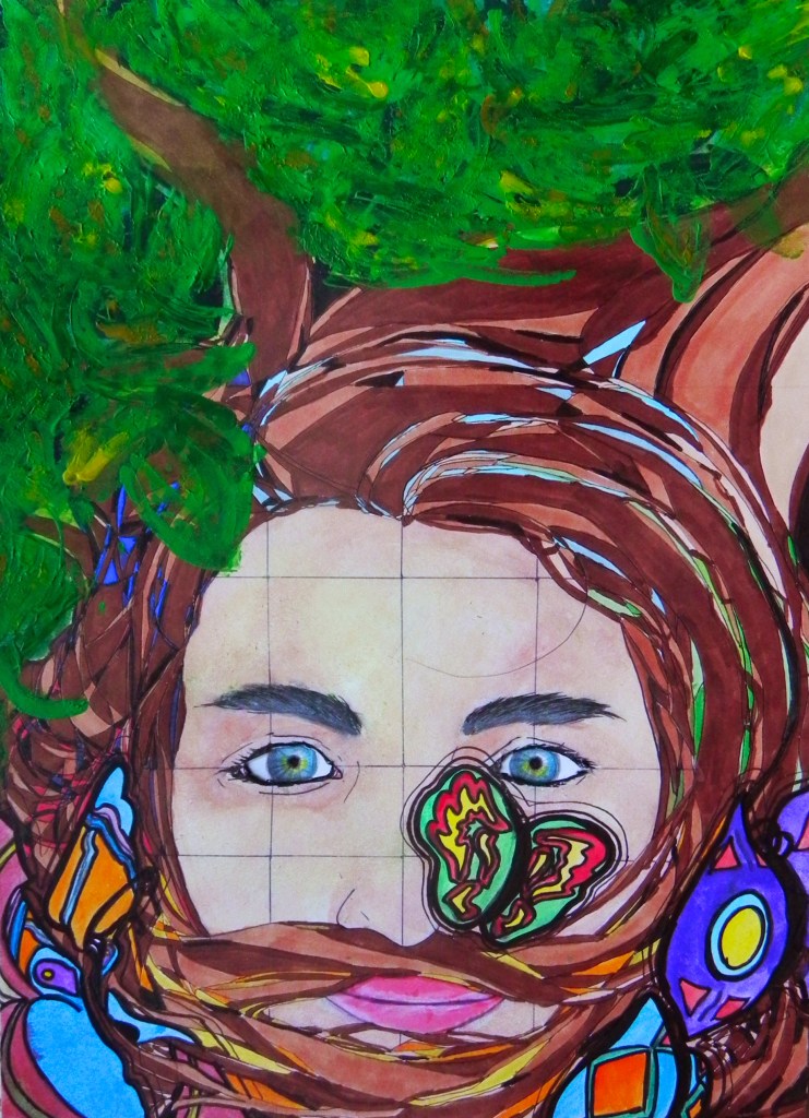 Whole (Watercolor, Pencil, and Sharpie Marker on Paper 9″ x 12″) – $100