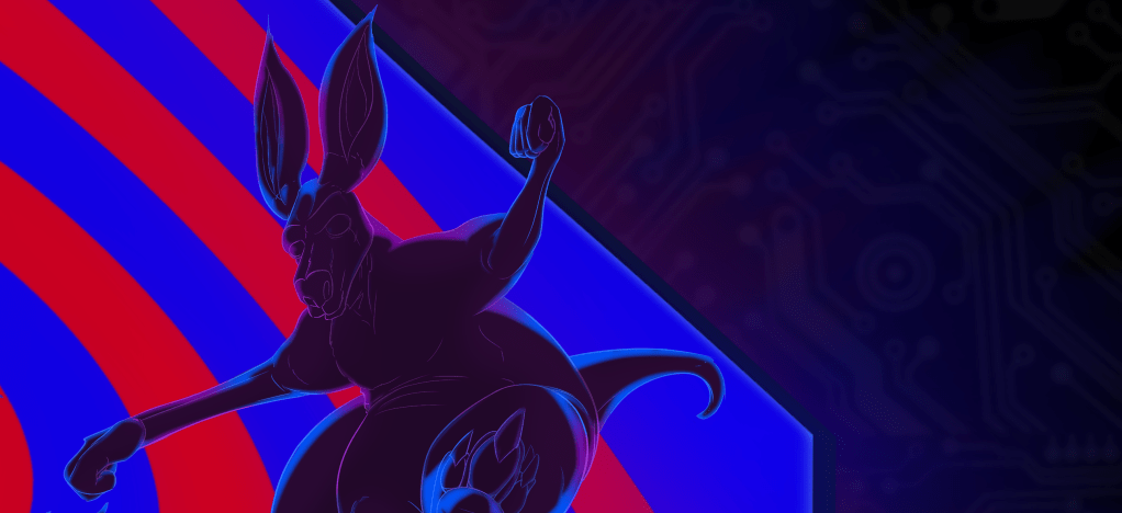 A bevy of bouncin’ Kangaroos race along a conveyor belt track silhouetted by the endless, entrancing projection.