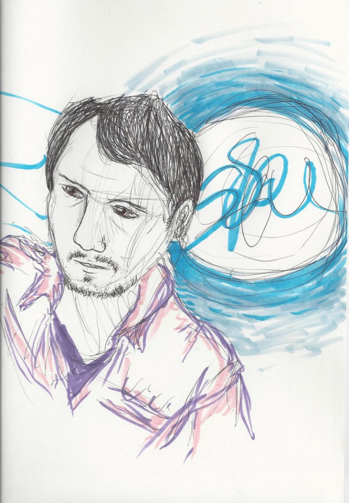 Portrait of Brian Aubert (2015 Pastel Marker and Pen on Paper 9″ x 12″) – NFS