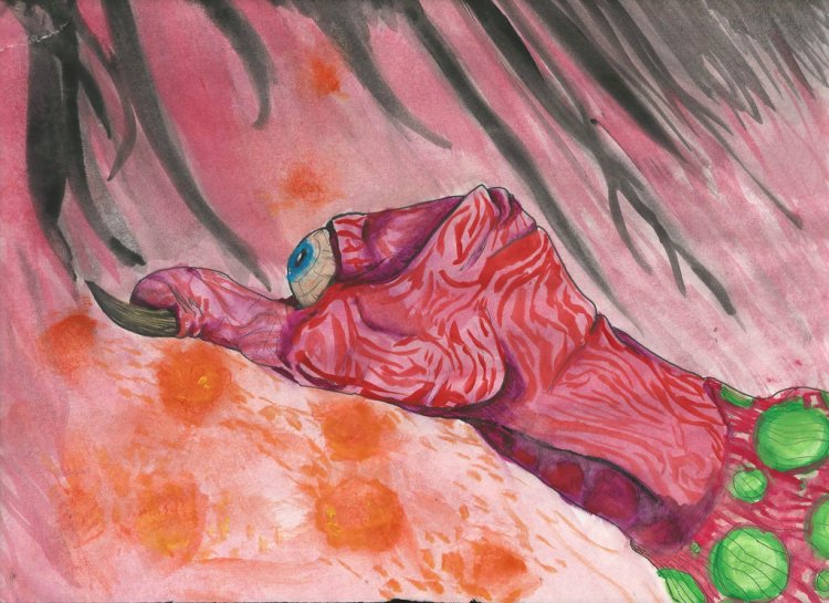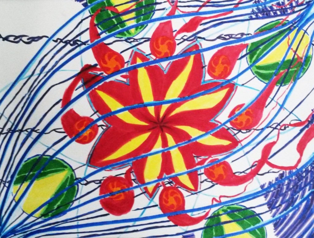 Science Fiction (2015 Pastel Marker, Pen, and Watercolor on Paper 9″ x 12″) – NFS