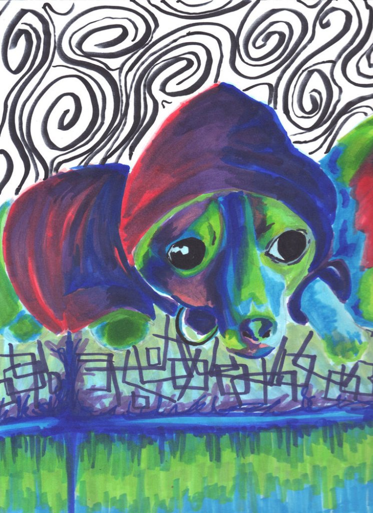Doggy Dog World (2015 Pastel Marker on Paper 9″ x 12″) – NFS