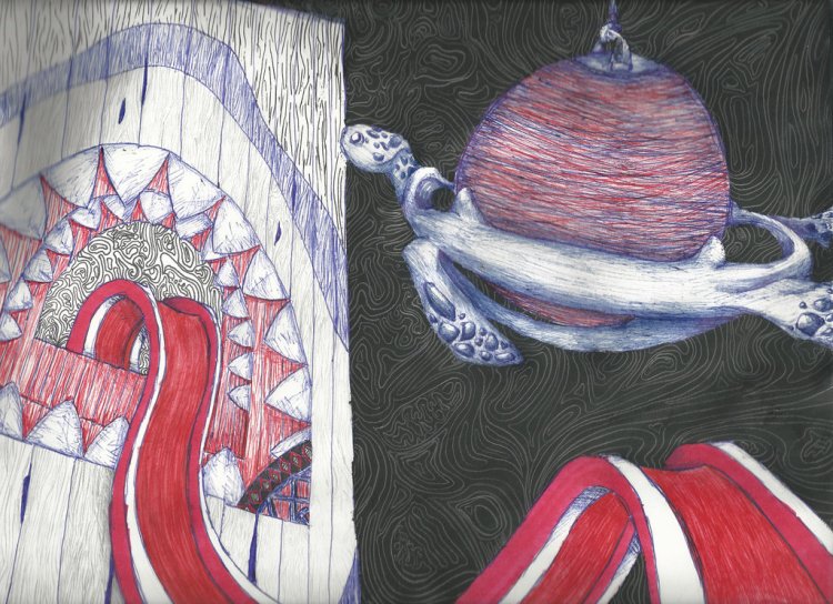 Turtle Planet, Shark Planet (2016 Pen, Pencil, and Gouache on Paper 12″ x 9″) – $90