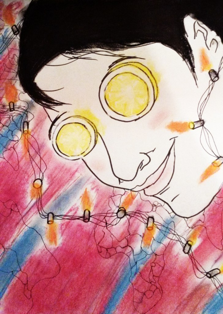 Lemon Lights (2016 Pen and Pastel on Paper 9″ x 12″) – NFS