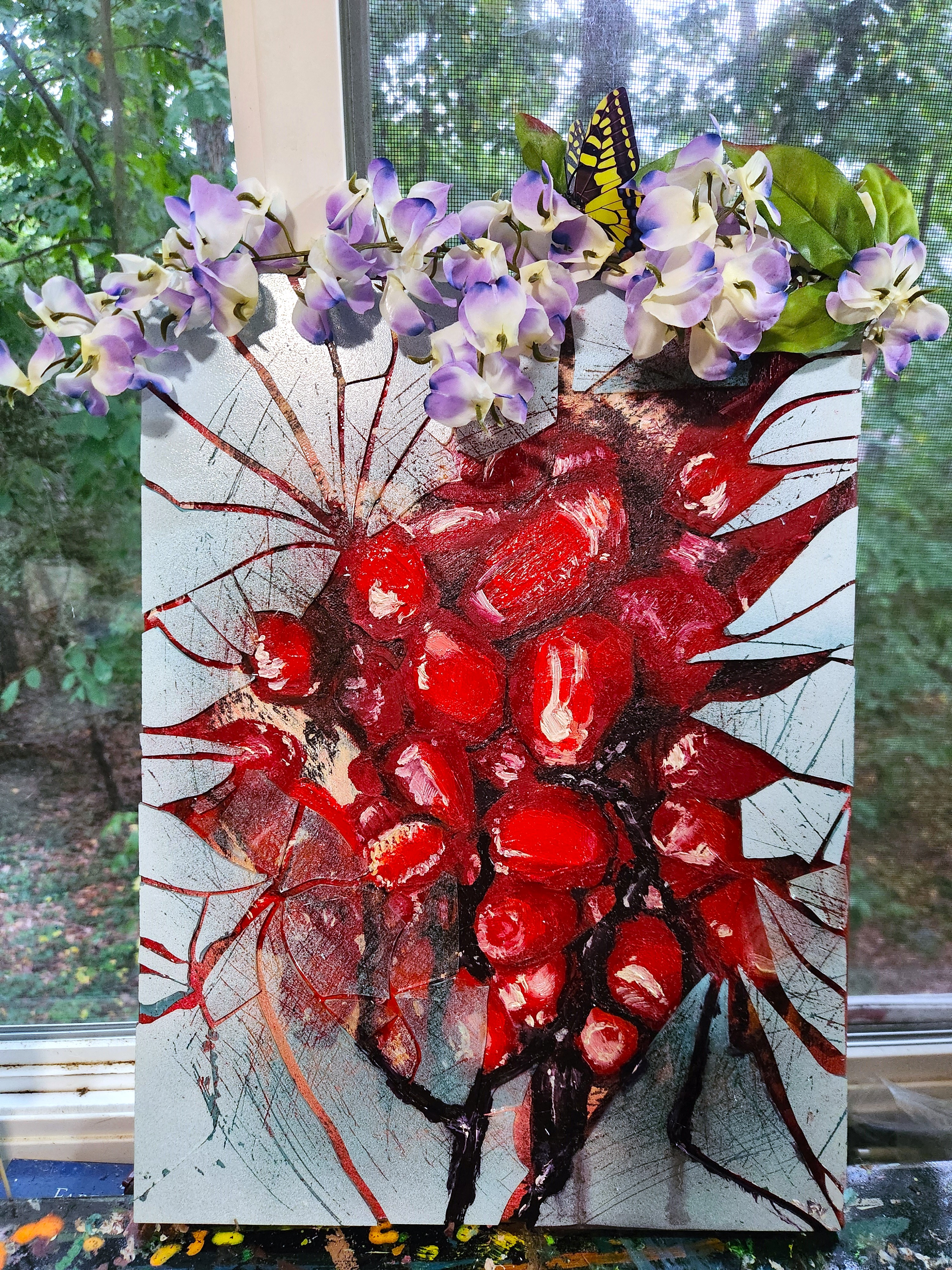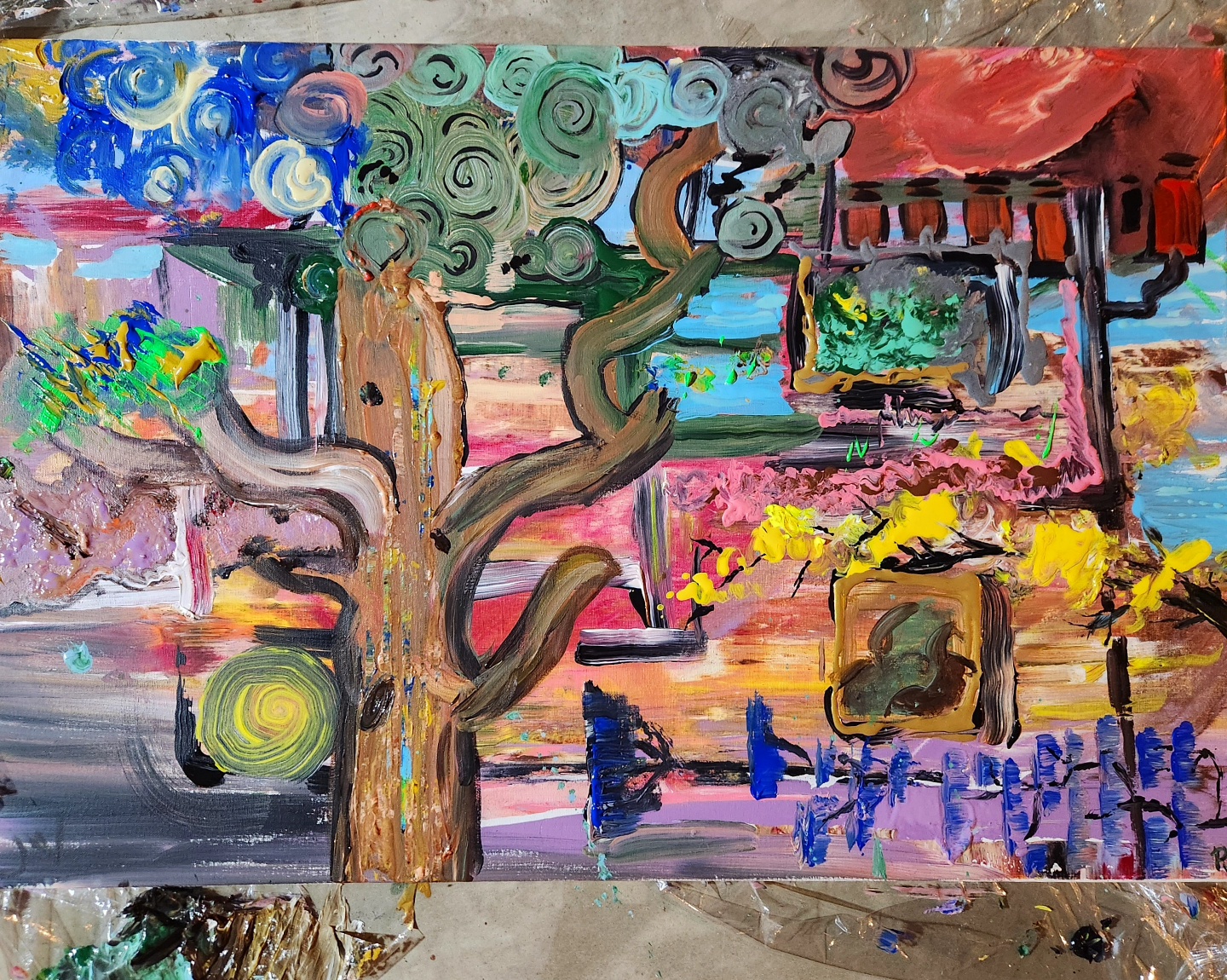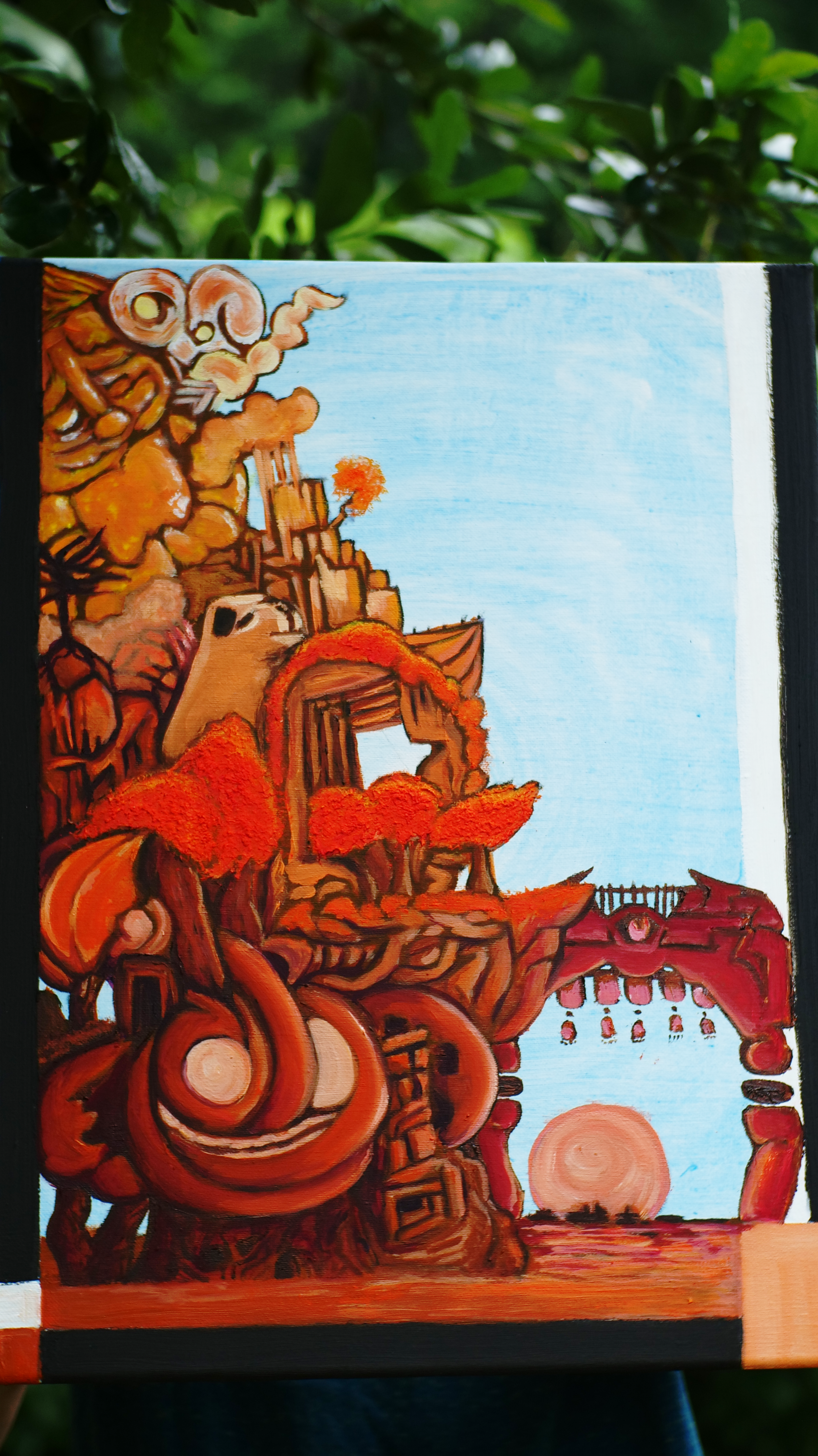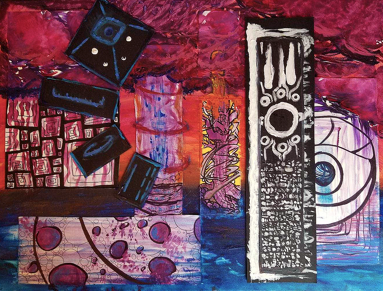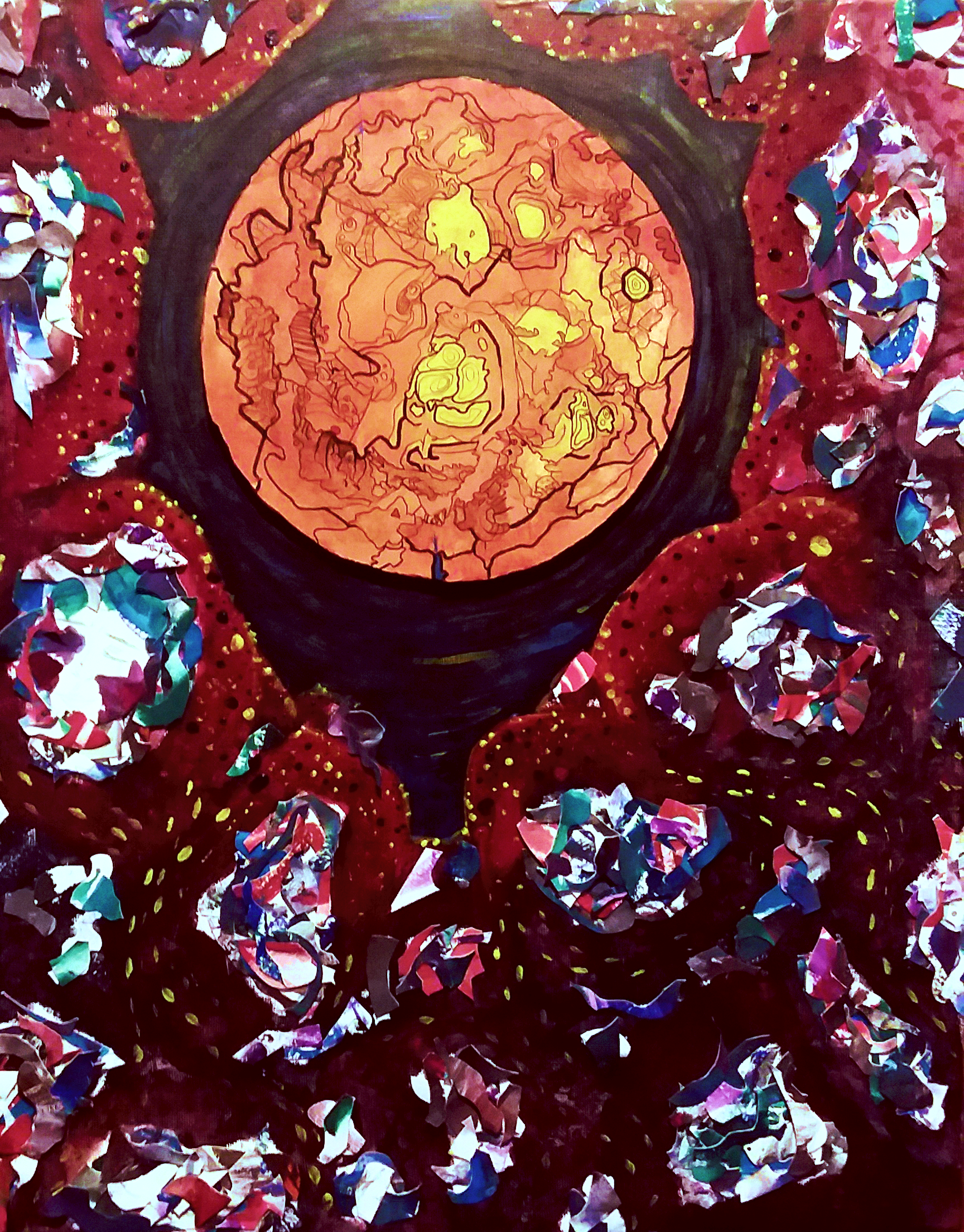 Sometimes, paint alone cannot contain my vision and I start to play mix mediums and new elements. Once the glue comes out, the fun multiplies during the creative process.