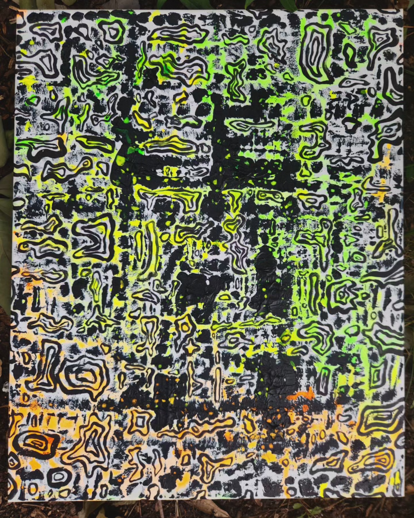 What’s more fun than adding glue to you painting? Adding friends of course! Painting with other’s is a wonderful way to forge bonds while getting creative and silly. I often approach these collabs from a very free form perspective, automatically painting and letting each moment influence by brush while focusing on balancing out and potentially enhancing my collaborators efforts.